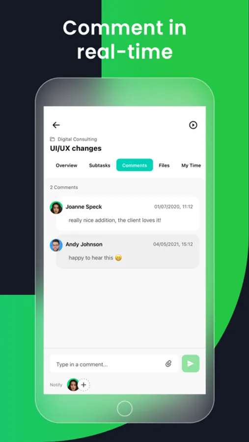 - Comment at a task or project level about the latest project updates