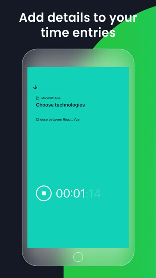 - Track time via the stopwatch or add it manually