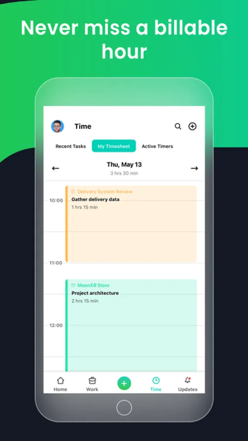 - See all your time chronologically in the timesheets area, and easily edit existing time entries