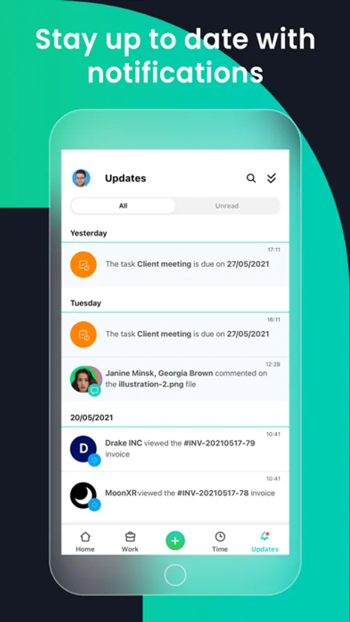 - Receive a push notification when a project update is available