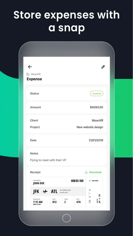 - Store mobile expenses with a camera snap