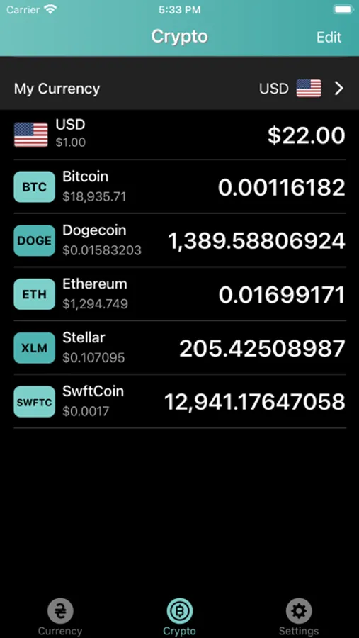 Currency Rate from WOOPSS allows you to easily convert all the world's currencies and, at the same time, it supports pretty large list of Crypto currencies.