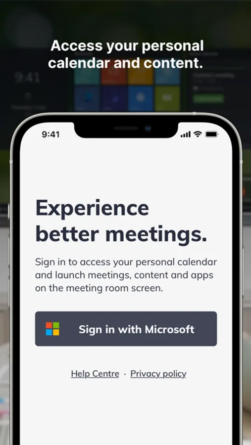 Launcher mobile app is verified by Microsoft, allowing you to wirelessly and securely sign onto meeting room displays using proximity detection to access your personal meetings and OneDrive files within the meeting space.