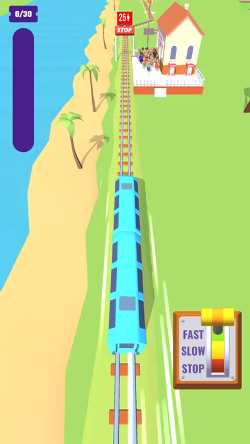 The rules of this arcade game are pretty simple. Your main goal is to stop at a spot where your passengers can most easily board or get off the train. It may sound easy, but it’s quite a challenge! If you stop too far away from the train yard, the annoyed commuters will refuse to get on the train. And if you go too far beyond the stop sign, your train will break down!