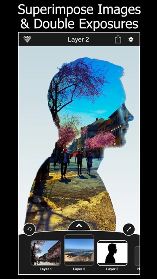 - Superimpose two photos for a double exposure effect