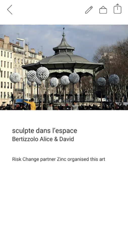 The Risk Change app allows you to explore, share artworks and stories with the world. You can upload images and locate them on a map to show where the artwork was created or where it can be found today.