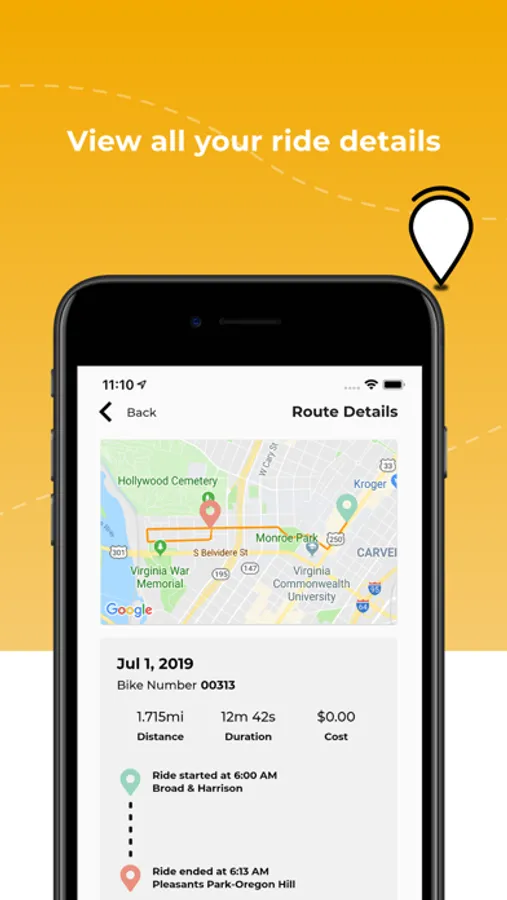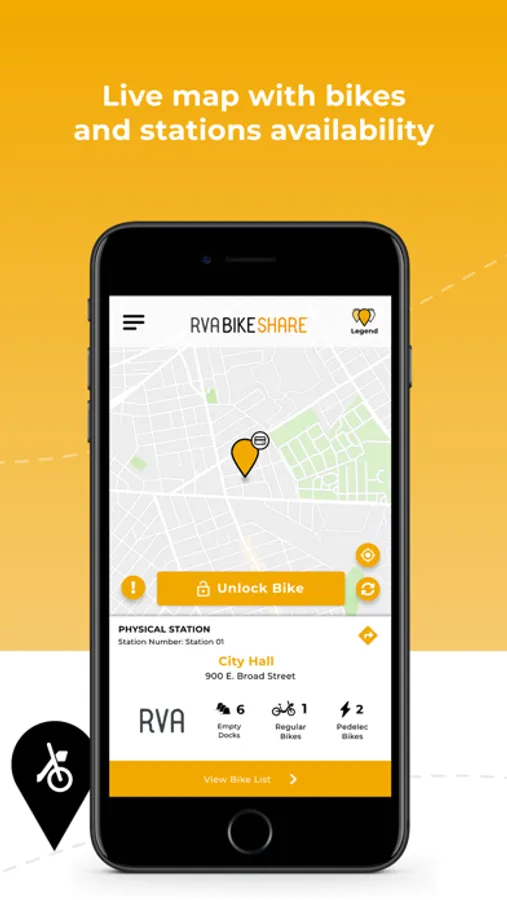 The official RVA Bike Share App is your ultimate tool to bike around Richmond. Use the App to check bike availability at each station as well as your profile and previous routes. You can even unlock a bike!