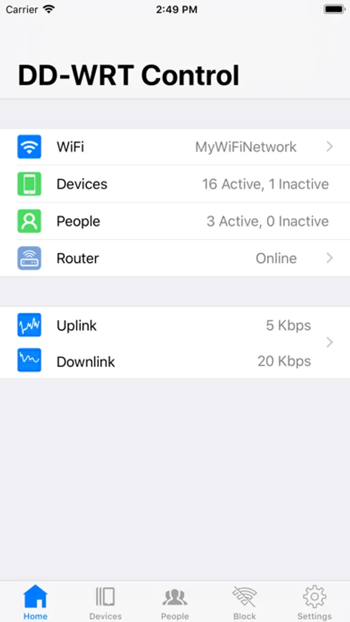 • Devices : Monitor all devices connected to your DD-WRT router (Active/All/Blocked filters), Status info, Wired/Wireless types, Blocked/Active status, Drill down and get detailed device info from MAC Address, IP Address, Device Manufacturer info, status.