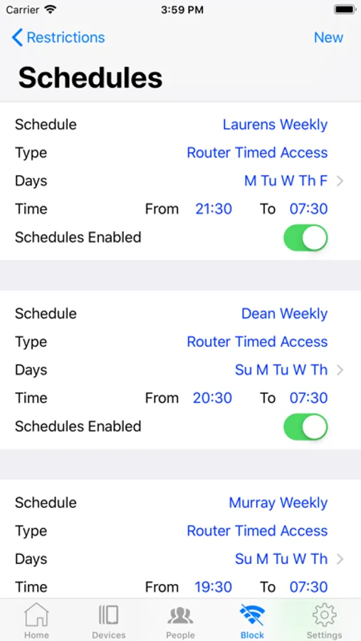 • Create, Edit, Disable/Enable the Weekly Schedule Grid by the hour! Block out chunks of no internet time for your family!