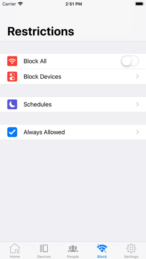 • Simple quick toggle to block add devices not tagged as Always Allowed.