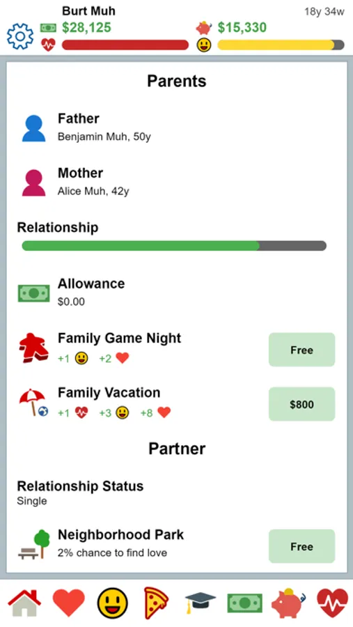 A fun life simulator game. In My Life, you begin as a child and play your way through to your death. The choices and decisions you make along the way will impact how your life plays out. Will you go to school? How much school will you go to? This will impact what kind of jobs you can work and what kind of living you will make. Will you spend time with your family? Start a family of your own? This will impact your happiness and well being. What kind of diet will you eat? Where will you live? Will you get married? How much money will you save? All if these decisions will impact how long you live and how your life turns out!