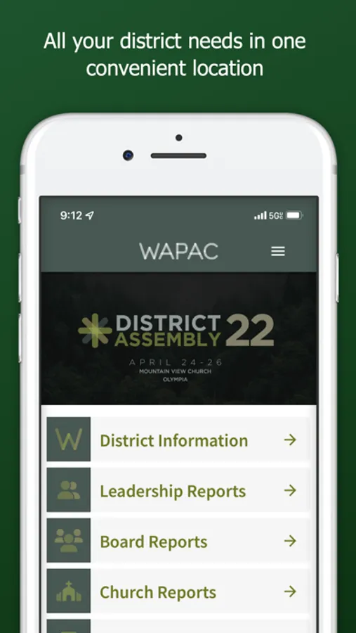 The WAPAC app brings you custom, dynamic content for all your District needs! For District Assembly, you will be able to utilize this app for viewing reports, voting, checking-in, and more! Throughout the year, come here for the most up to date information on all District events. You are able to create a user or login with your Pastor account, select a language you want to view the content in, and more.