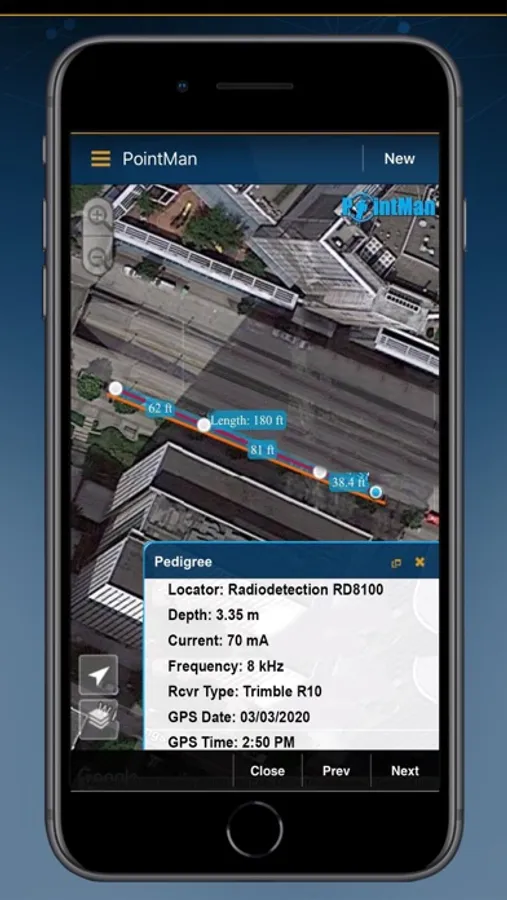 PointMan is a unique Precision Mapping Solution. Use PointMan Plus to help capture, record, and visualize the precise (x, y, z) location of critical surface & subsurface utility assets. PointMan's mobile app allows users to connect their mobile device with major GPS/GNSS, cable, and pipe locating equipment manufacturers to capture mission critical infrastructure data with unprecedented precision that includes; type, depth, accuracy, depth of cover, and precise geospatial location. PointMan can also create and bind forms, sketches, and photos to any point, line, or polygon and works in unison with mobile devices in order to display captured meta-data into a reliable mobile mapping software, all from the palm of your hand.