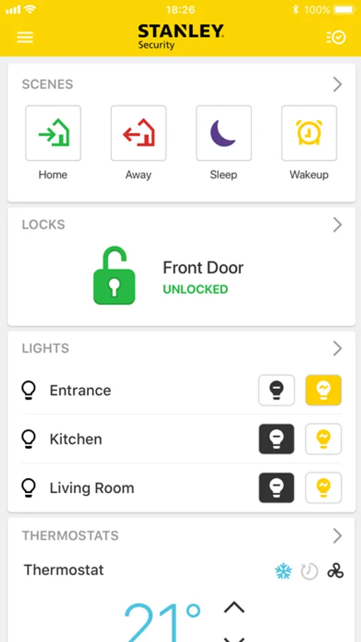 real-time alerts, dim the lights and even answer the door-all at the touch of a button. With STANLEY