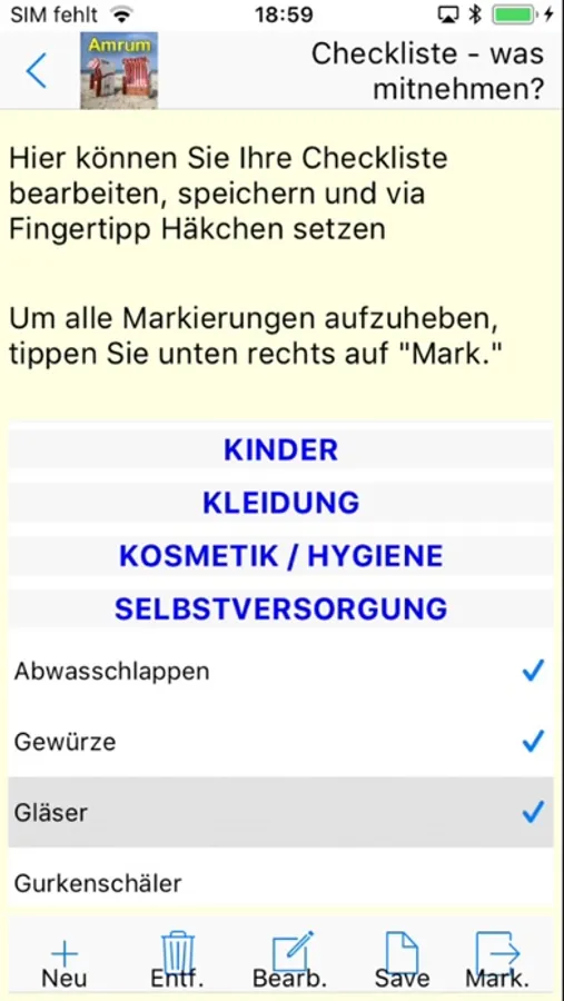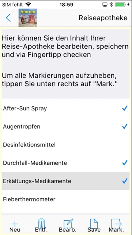Die Amrum App und enthält u.a. Wetterstatistiken mit schönen Diagrammen z.B. zum Klimavergleich zweier Urlaubsorte. Außerdem bietet sie eine Reistagebuch und Reise-Checklisten für Ihre Reiseapotheke und Ihr Urlaubsgepäck, welche Sie auch selber verfeinern und im nächsten Urlaub wieder benutzen können. Weiterhin ist eine Sammlung von relevanten Webseiten für die Region vorhanden, sowie eine kleine Diashow und sie gibt Ihnen die Möglichkeit, alle Informationen, die für Ihren Aufenthalt auf Amrum oder für Sie als Fan von Amrum interessant sind, möglichst bequem im Internet abzurufen: