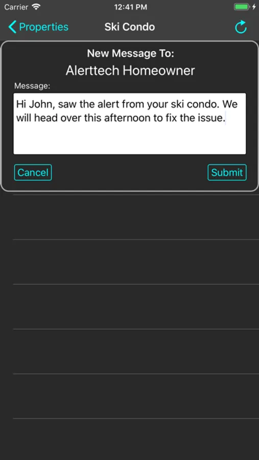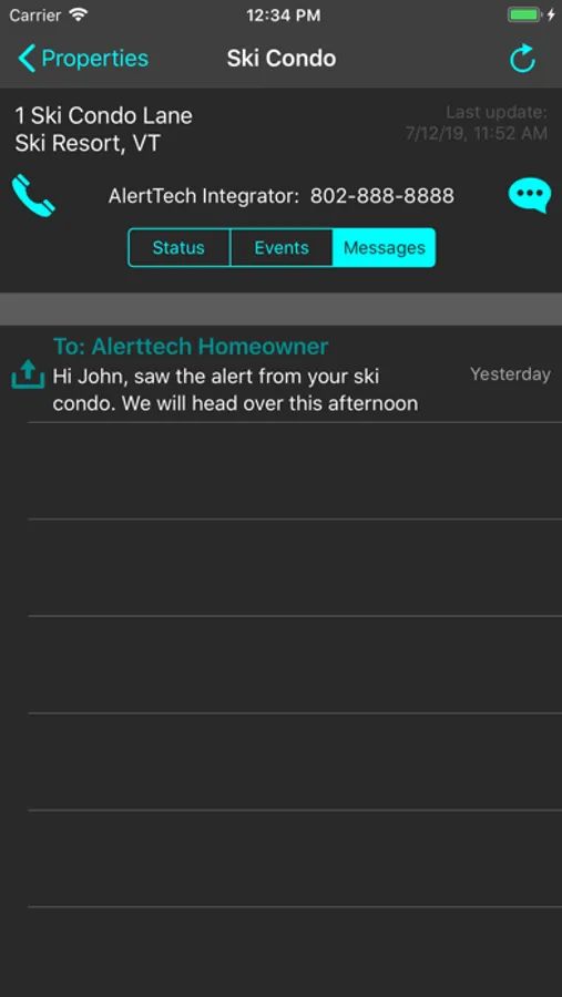 An in-app messaging feature offers direct communication between the owner and integrator ensuring a quick response to critical issues. In-app messages are stored in the events history providing a log of conversations related to the events at the site.