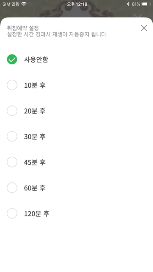 설정한 시간 경과시 재생이 자동 중지 됩니다.