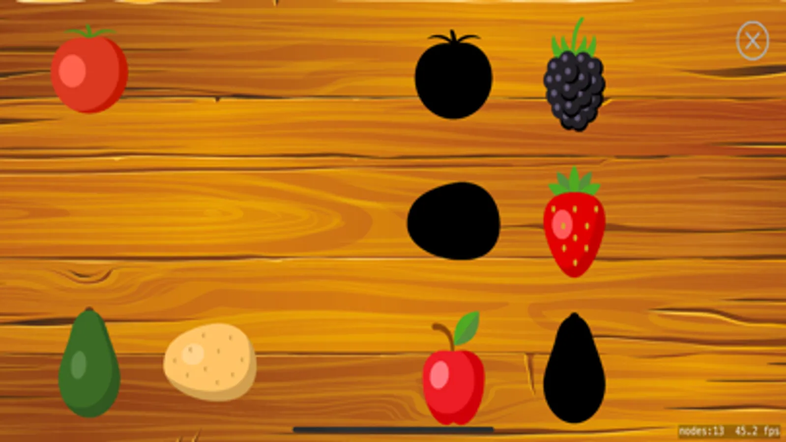 Match each object to its shadow to build awareness and cognitive skills. Your children can practice their visual recognition skills. Basic drag-and-drop games for babies and toddlers. Multiple themes and items to drag and drop, like kitchenware, fruits and veggies, cars, and other transportation. Shadow matching with the original pictures. Training on small motor skills. Shape recognition by sorting different objects with different shapes. Improving early child development. Babies and toddlers. All ages are welcome. Parental gate area just to make sure your kids and toddlers and babies are protected for Advertisement.
