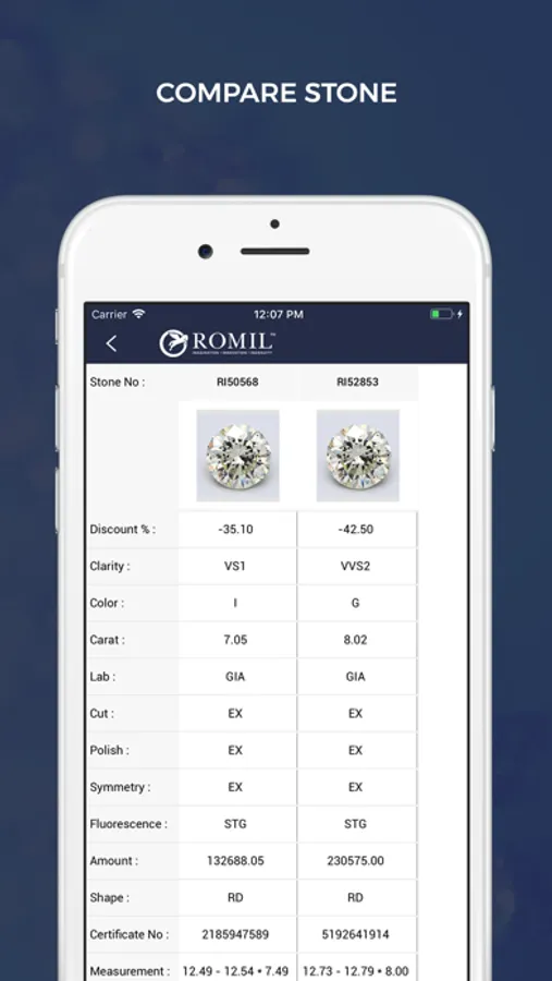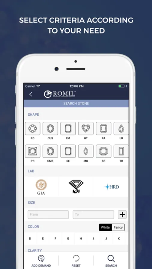 Buying diamonds online just got better with Romil. Application enriches with the features that take the online diamond buying process to a whole new level. With Romil Mobile App we aim to make the diamond buying process more advanced and user-friendly for all our customers.