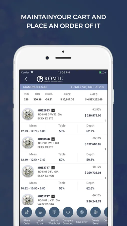 Discover the large variety of natural diamonds with the finest quality on Romil App.