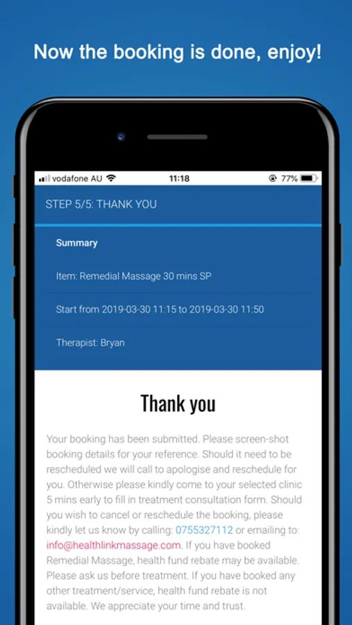 Booking EZ helps you find real-time availability for health therapists and make a booking at your preferred time. The practice that runs a back end of Booking EZ makes sure all availability are accurate. No need to make a call and chatting a long time to find a suitable appointment anymore. More and more practices are using Booking EZ and so that increasing more therapists are available for your choice.