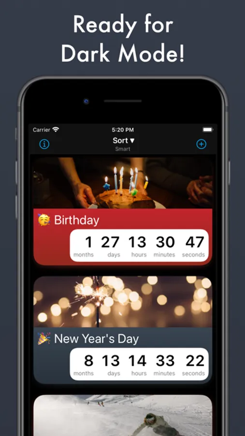 - Sort chronologically or use Smart sort, which will show the more relevant countdowns first.