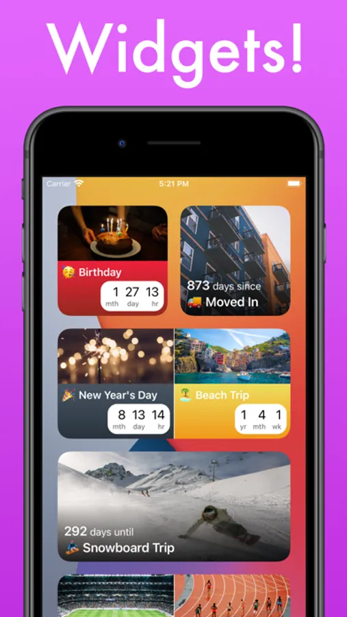 - Create as many countdowns as your heart desires.