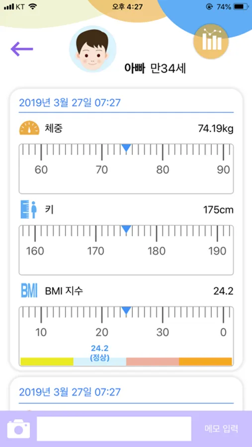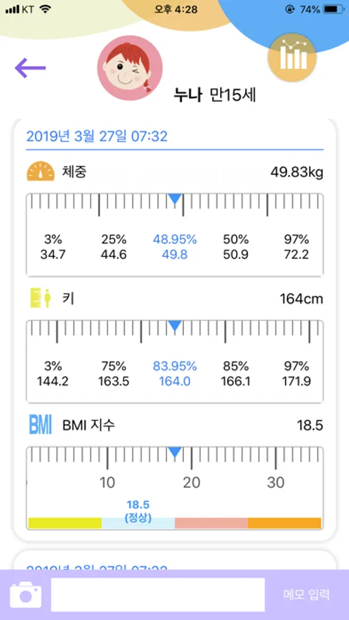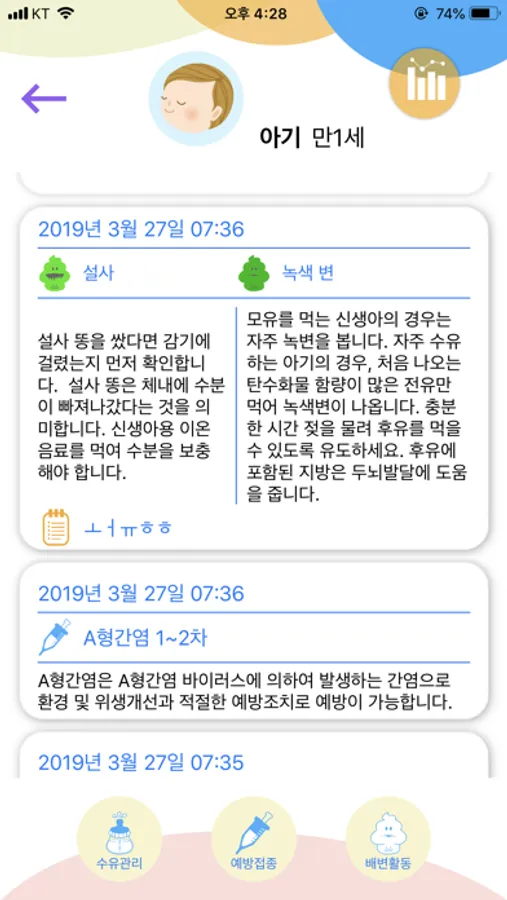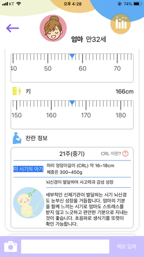 임산부의 경우 임신주수별 체중 관리 및 태아 정보를 알려주며 영유아/청소년의 경우 표준성장율을 알려줍니다.