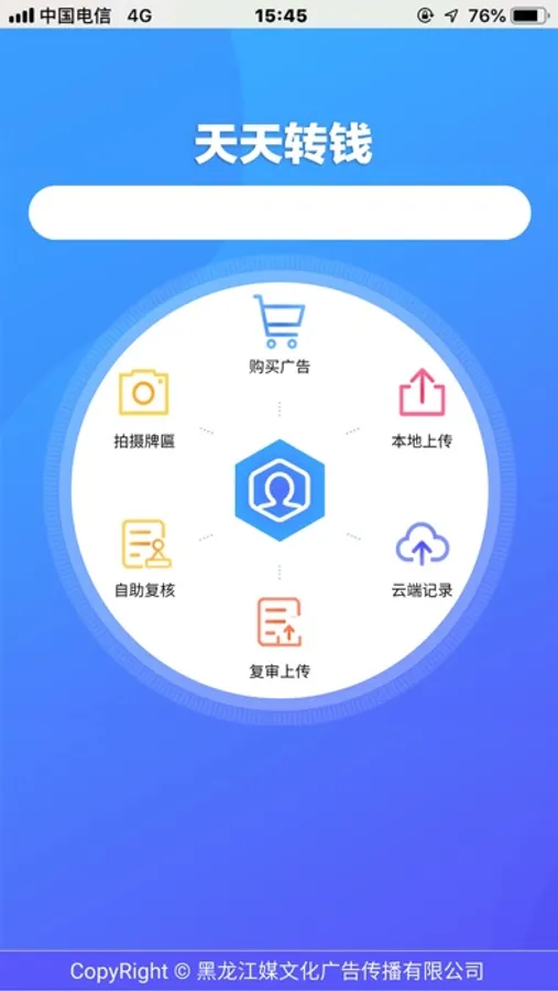 “天天转钱”软件是为有闲散时间的人兼职赚取广告费的综合管理软件。该产品提供广告媒介获取、广告媒介发布管理及报酬支付的“一条龙”式服务。具有设计人性化、操作简单化、使用便捷化的特点。