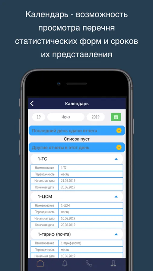 Приложение позволяет просматривать информацию о статистических формах, необходимых к представлению в органы статистики, просматривать историю сдачи статистической отчетности, проверять задолженность, дает возможность получать персональные уведомления о наступлении и о заканчивающихся сроках сдачи отчетности.