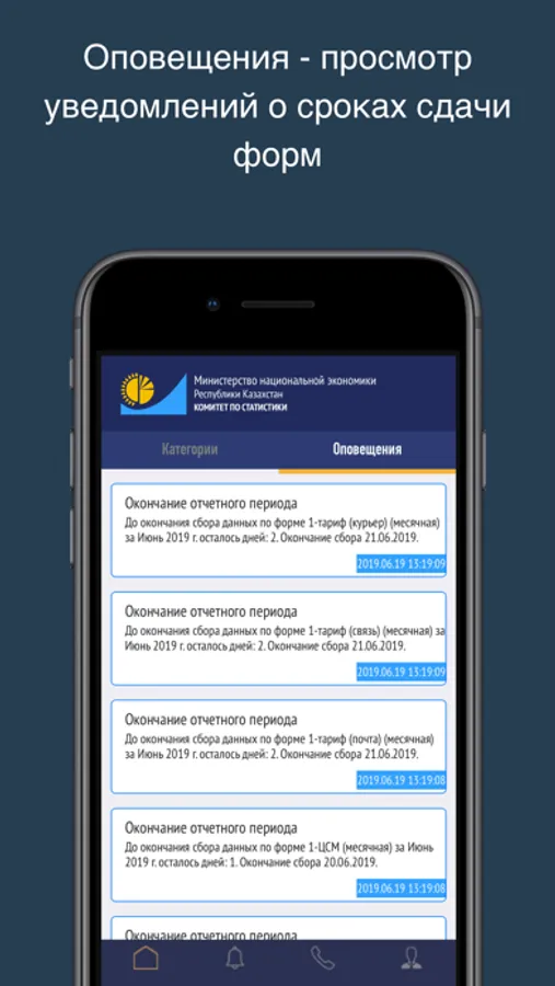 5. Оповещения - просмотр уведомлений о сроках сдачи форм;