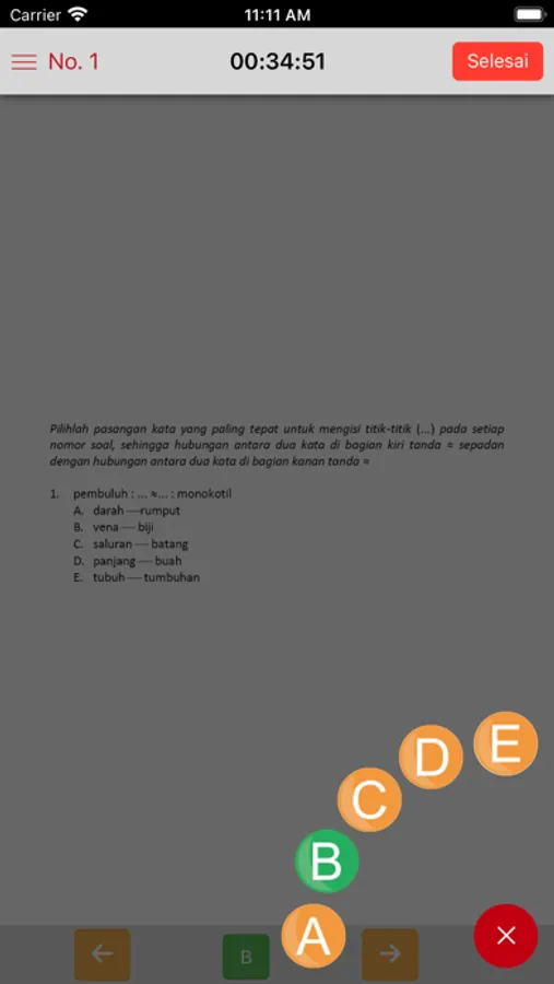 Fitur program ini dilengkapi dengan petunjuk pengerjaan soal, kunci jawaban, statistik hasil dan batasan waktu pengerjaan.