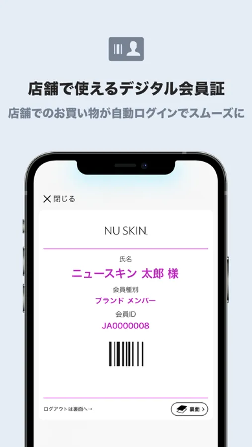 店舗で製品を注文する際に、デジタル会員証を専用リーダーにかざすとログインが不要になり、スムーズにお買い物ができます。