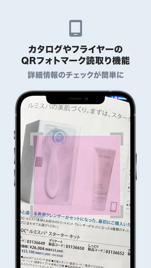 製品カタログやリーフレットなどからすばやく購入ページにアクセス! お気に入りの製品を見つけたら、アプリのカメラ機能をつかって「QRフォトマーク」をかざしてください。