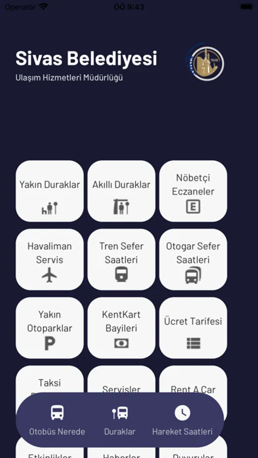 Hat hareket saatleri, anlık araç bilgileri, akıllı duraklar, müdürlük haberleri, duyurular