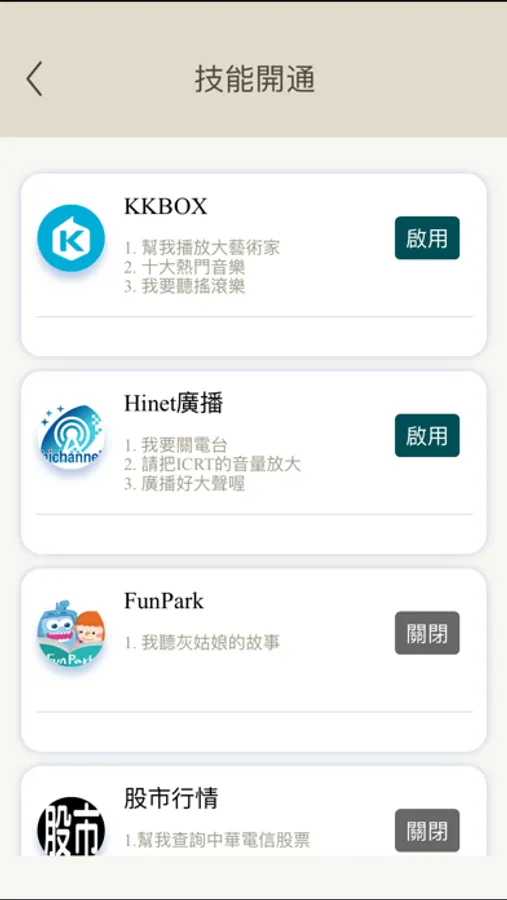 當您取得與中華電信i寶貝服務相容的終端設備,例如智慧音箱,您即可透過i寶貝APP讓您的終端設備連上家中的wifi網路熱點,進而開始享用i寶貝提供的各種服務技能,例如MOD轉台、聽廣播、聽新聞等。