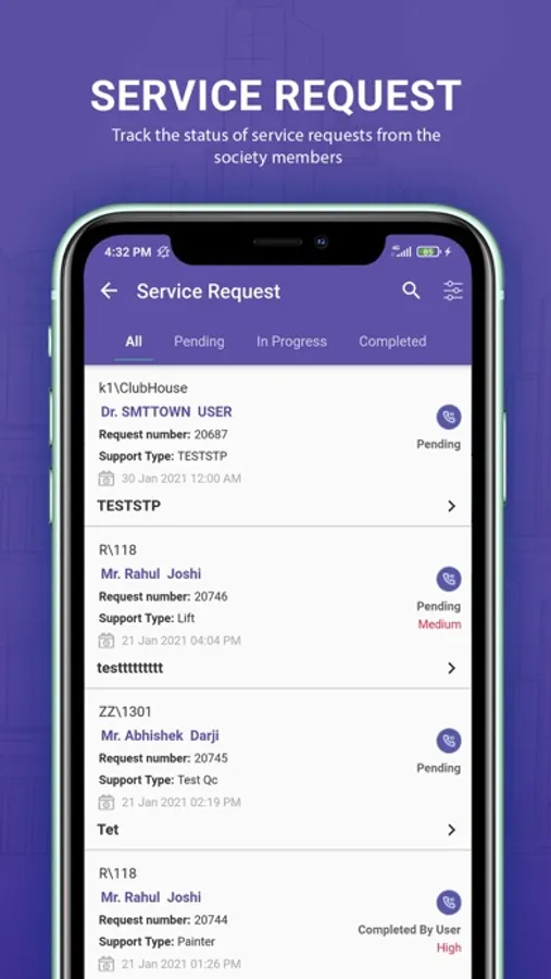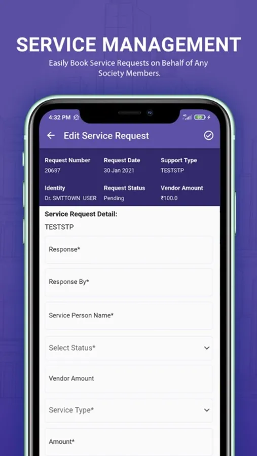 Service Requests: Manager can quickly receive service requests from the society members with the ease of Smart Town Admin Mobile app. It helps the admin to quickly fulfill member requirements in a hassle-free manner.
