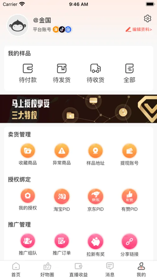 “红人伴侣”是专为红人量身打造的电商赋能工具,专业提供精选货源、粉丝群运营工具及接广告等服务