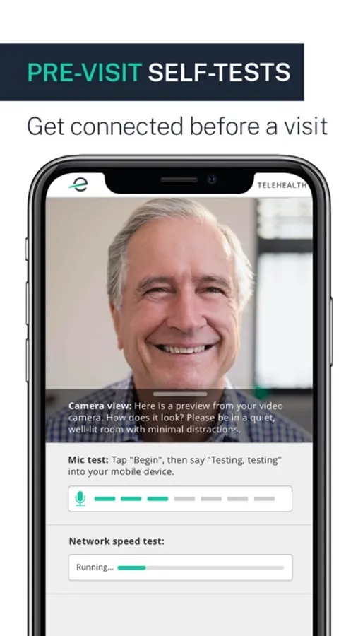 2. Before your visit, test your connection by navigating to the app’s home screen and clicking the “Self-Test” button. This test will show you the strength of your audio and video connections.