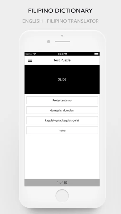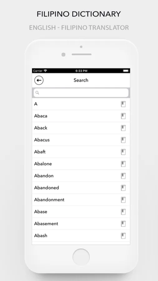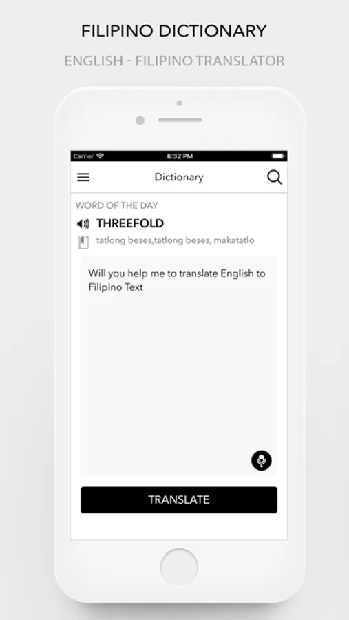 English to Filipino(Tagalog) Dictionary and Translator (FILIPINO Dictionary & Translator) is an offline tool to find meanings of English words and sentences in Tagalog language. The Filipino Dictionary contains the meanings of thousands of English words with their accurate meanings in Tagalog.