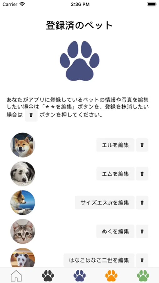 ・ペットの情報編集機能