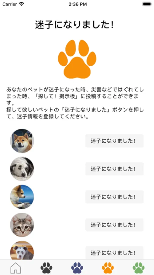 迷子ペットが保護された時に、飼い主にすぐに連絡が取れるようにするためのアプリです。