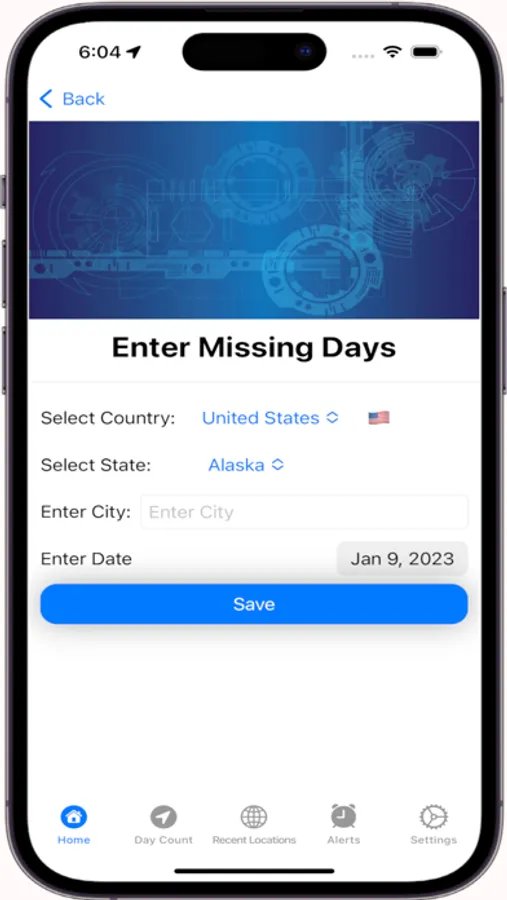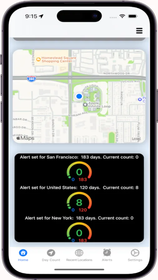 Track your day counts in various locations for tax (including statutory residency, domicile monitoring, tax filing obligations), homestead, nexus, exemption and other compliance purposes. Track residency and tax day counts by Country, State, Territory, Province and/or City.