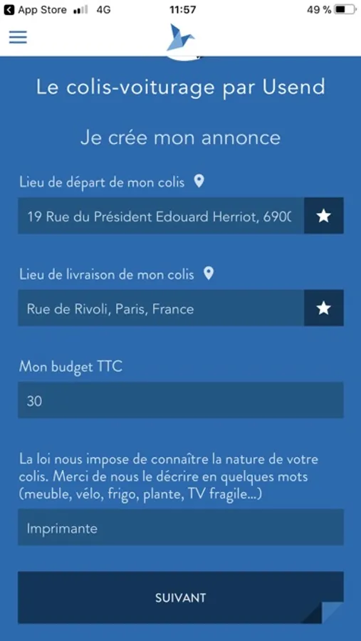 L'appli vous donne un tarif en trois clics, sans même avoir besoin d'ouvrir un compte !