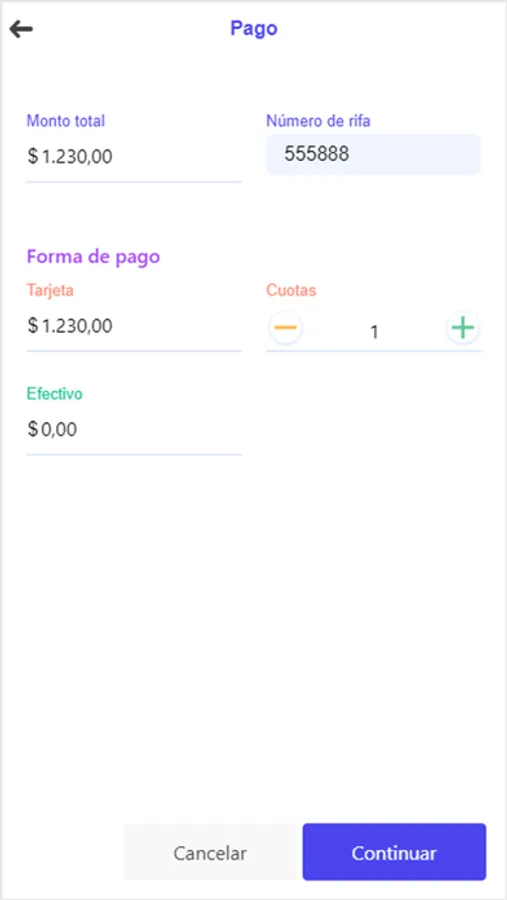 Permite gestionar rifas vendidas, clientes a los que se les vendió y la realización de la venta, tanto en efectivo como con cualquier tarjeta de crédito/débito utilizando un POS o mPOS de la red POS2000.