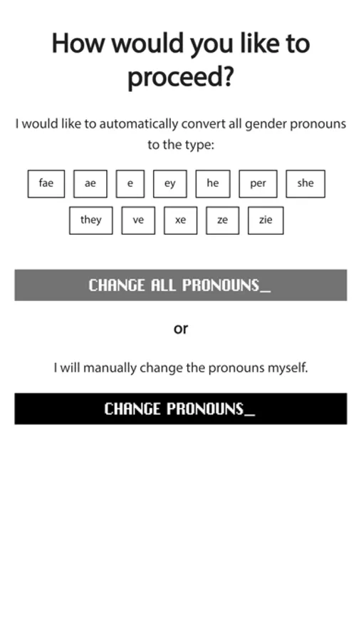 The Right Pronoun is a simple and speedy way to make any form of communication you have written or want to pass on, inclusive. It doesn’t matter if it’s a text, an email, a questionnaire or even a 20-page on-boarding contract, The Right Pronoun will convert all contentious gender-referencing pronouns in an instant.
