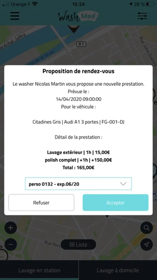 * Restez en contact avec le laveur à domicile sélectionné via WashMee ! *