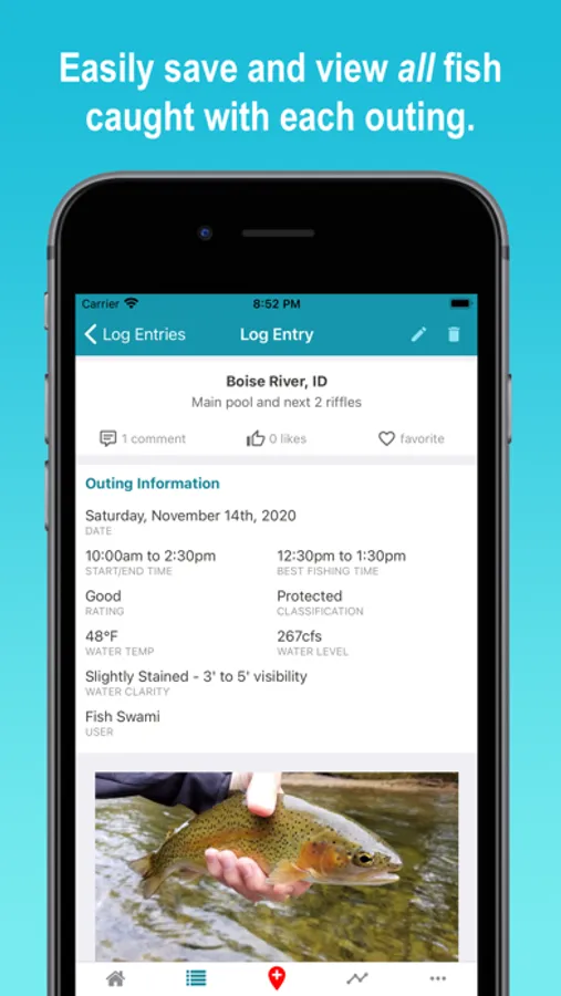 Fish Swami's fishing app is designed to work if you fish rivers, streams, lakes, ponds, or anything else. While you're fishing, you can enter in fish as you catch them, wait until you're finished at a fishing hole to enter in a group of fish, or wait until the end of the trip to enter in all catches. Whether you fly fish, lure fish, or bait fish, you'll be hooked on Fish Swami!