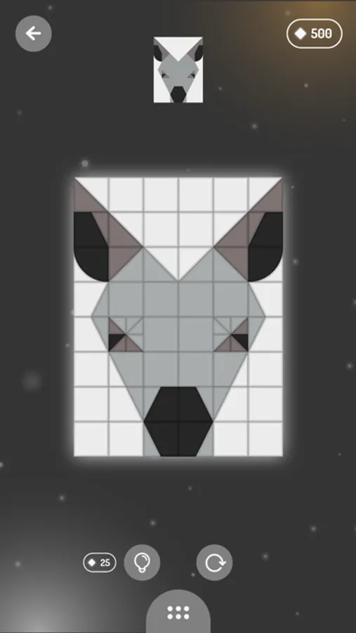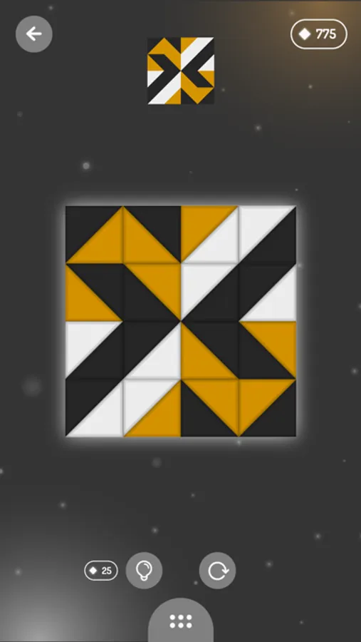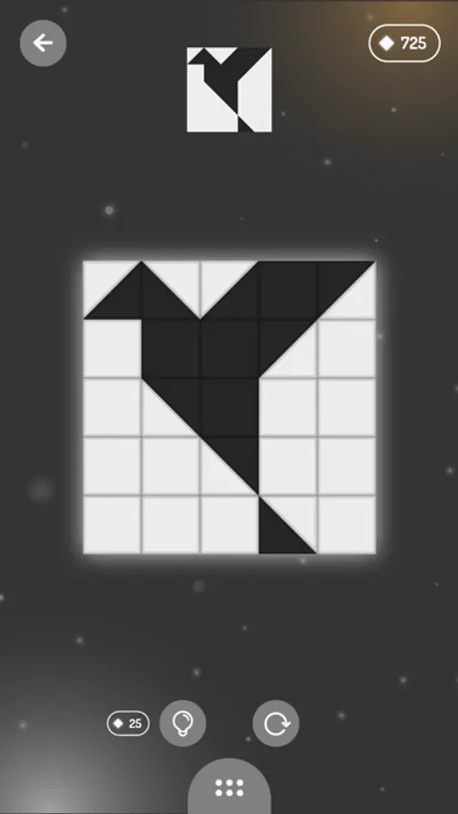 Goal is to match tiles with the given artwork. Tap the diamond-shaped pieces to rotate them individually on its own axis, position correctly and transform pieces into the artwork with one final twist: Slide your finger across the screen and experience the magic!