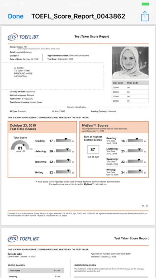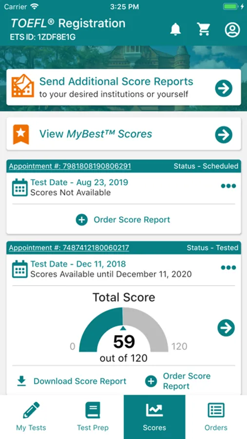 The TOEFL Official app offers 24/7 mobile access to register for a test, review upcoming test details, access prep resources, view scores (including MyBest™ scores), and order score reports. The TOEFL test is the premier English-language test for university admissions worldwide. TOEFL scores are accepted by 10,000+ institutions in 150+ countries, including Australia, Canada, New Zealand, the U.S., the U.K., and all across Europe and Asia. More than 90% of TOEFL test takers surveyed got into their 1st or 2nd choice university.